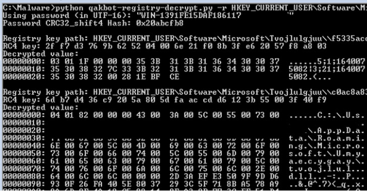 Cybersecurity researchers have decoded the mechanism by which the versatile Qakbot banking trojan handles the insertion of encrypted configuration data into the Windows Registry.